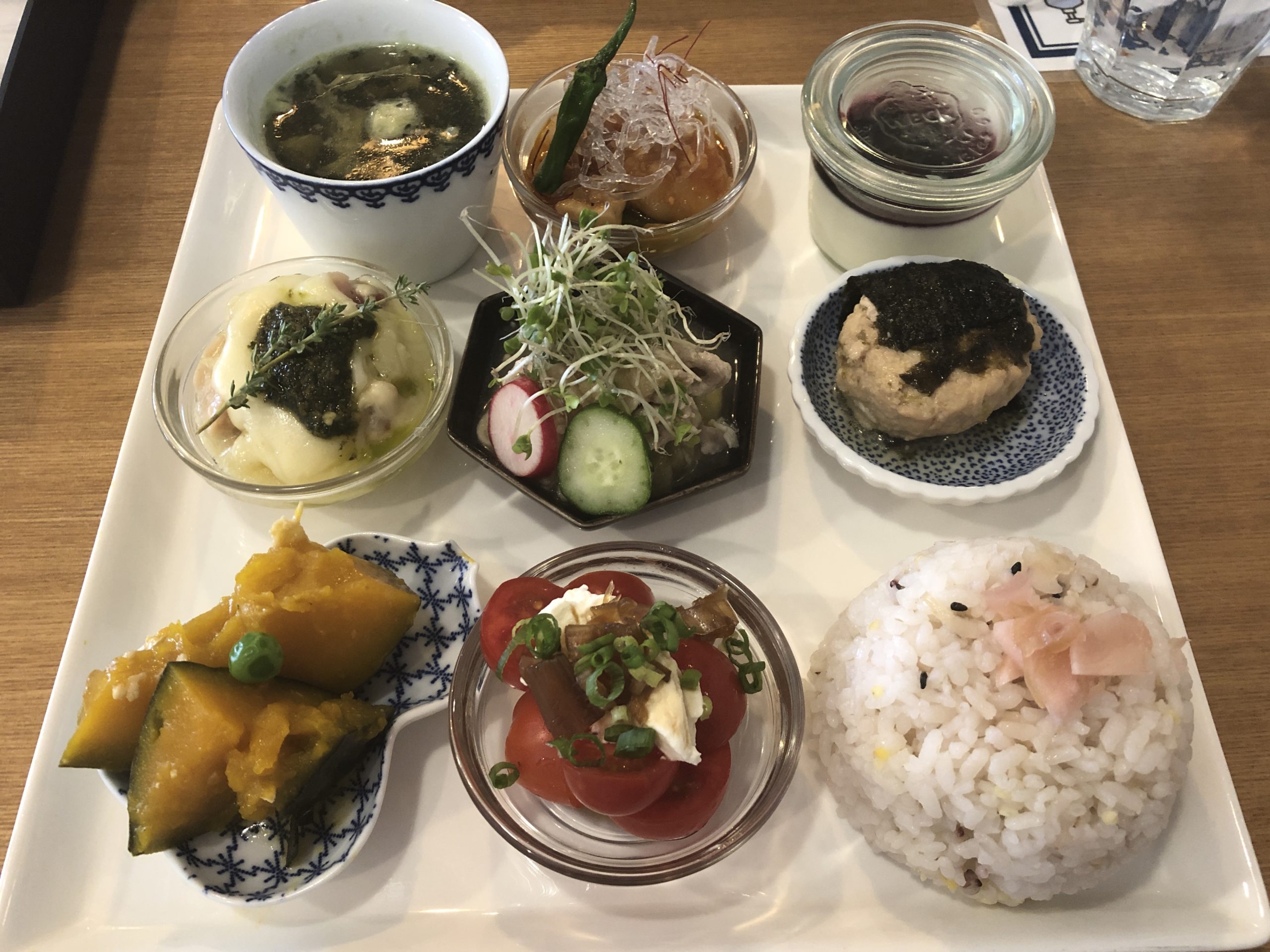 美味しそうなプレートが運ばれてきました!正方形のプレートに可愛い料理が沢山乗っています!