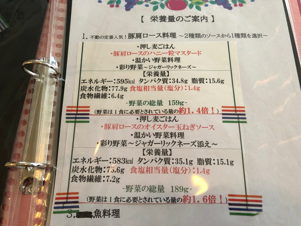メニューにはカロリーだけでなく栄養量が記載されておりました!